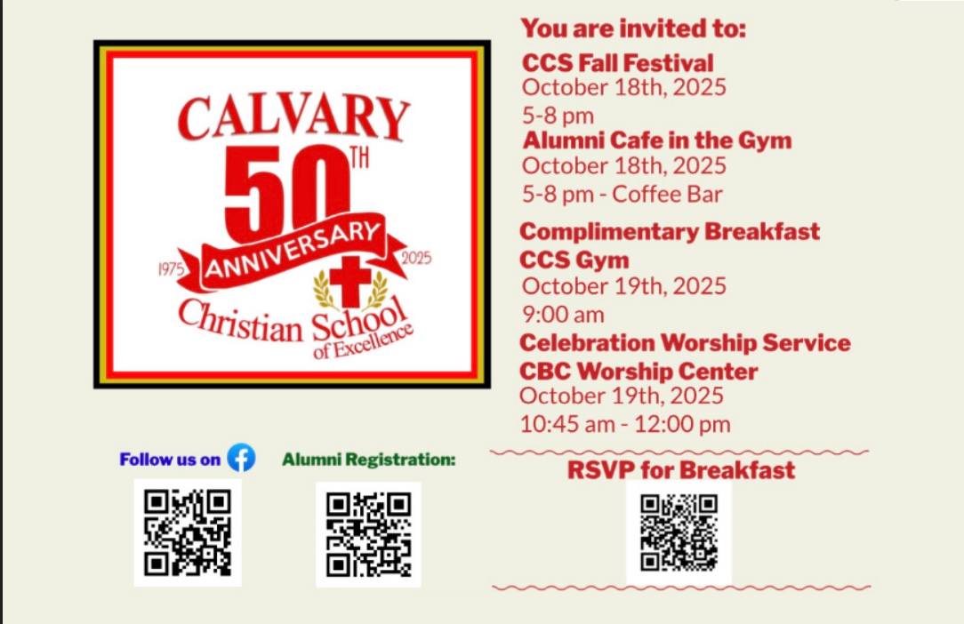 We will be celebrating the 50th Anniversary of Calvary Christian School on